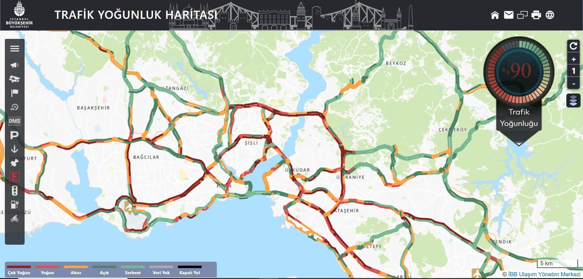Saat 17.30 sıralarında İBB Trafik’e göre yoğunluk yüzde 90’a ulaştı.