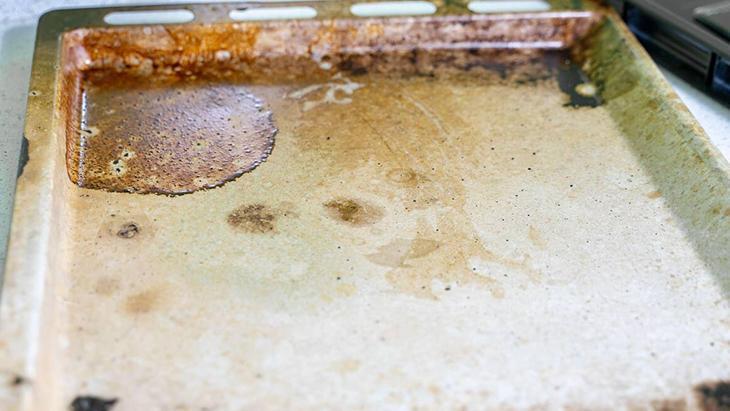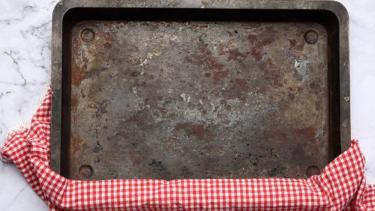 Birkaç inatçı leke kalmışsa, ovma teli kullanarak nazikçe ovalayın. Tüm bu işlemlerin ardından kullanmadan önce fırın tepsisini iyice yıkayıp durulayın.